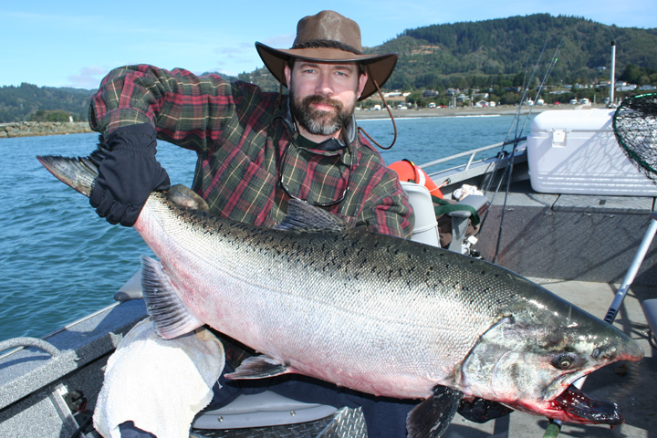 Rogue Bay, Coquille River, Coos Bay, Chetco River estuarySeason: August through October The Rogue Bay, lower Coquille River and Coos Bay provide some of the best late summer and early fall king salmon fishing anywhere. Salmon stack up in these bays waiting for rain, and provide some of the best fish-after-fish action anywhere. The Chetco River estuary, meanwhile, is one of the best areas outside of Alaska to catch a trophy salmon, with kings over 50 pounds caught every season. We troll for these big fish out of our custom 21-foot jet boat. |