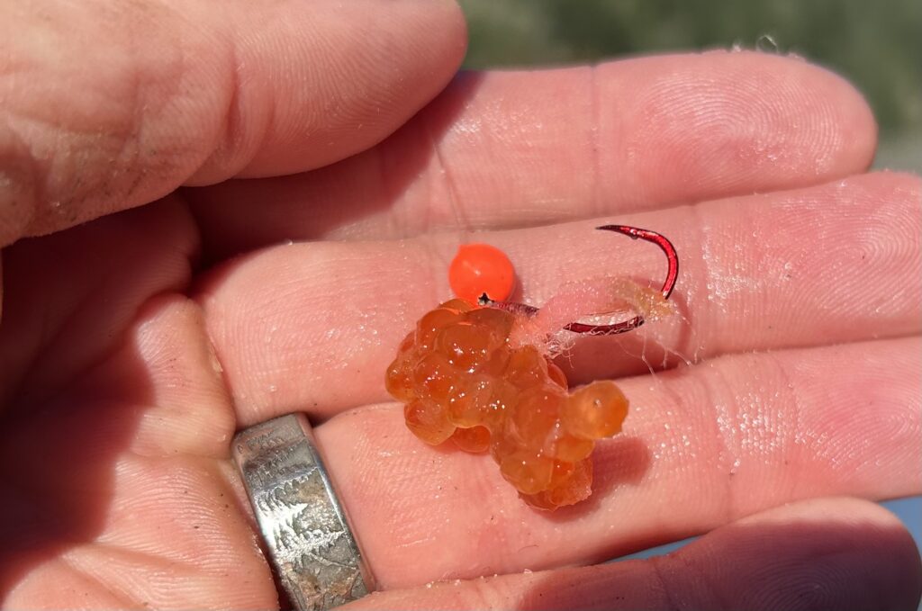Fishing from a drift boat for winter steelhead is a unique experience. As the guide maneuvers and rows the boat downstream, two anglers in front of the boat use light spinning rods to cast tiny clusters of roe and yarn using a technique known as side-drifting or free-drifting. The method is extremely effective, as large sections of water are covered in a fast-paced fishing trip, often drifting down 10 miles or more of river. Anglers also will use plugs, such as Yakima Bait Co. MagLips to intercept steelhead as they swim upriver.
